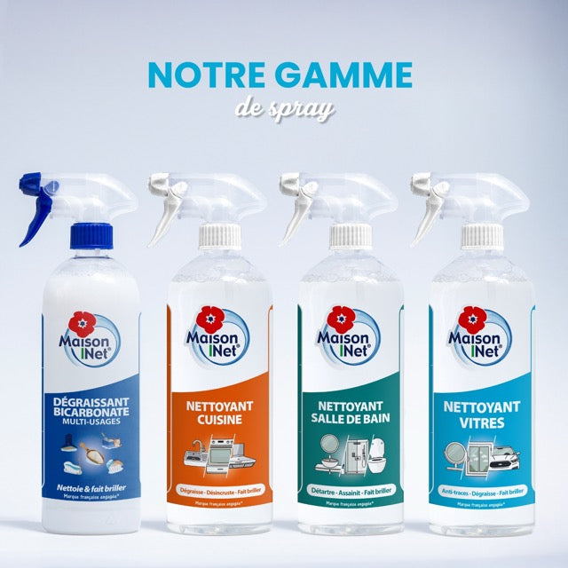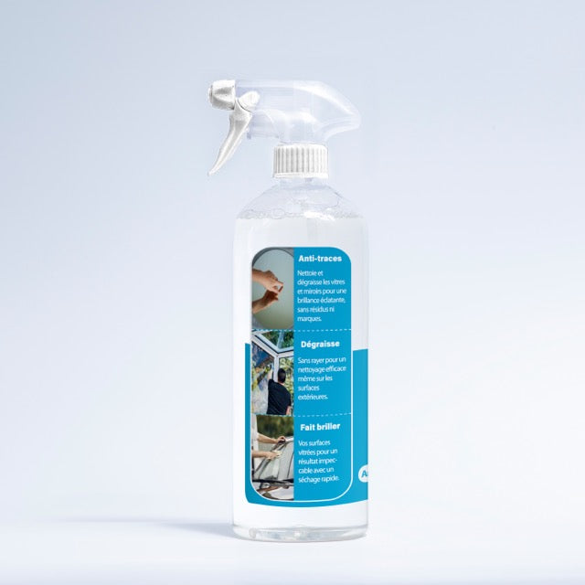 Utilisation : Pulvériser directement sur la surface à nettoyer, puis frotter à l'aide d'une éponge ou microfibre, sécher à l'aide d'un chiffon.