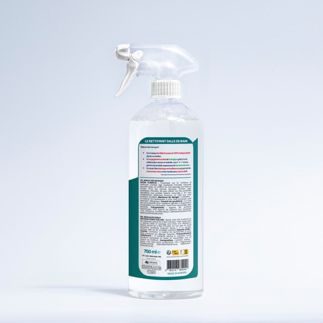 Utilisation : Surfaces de la salle de bain. Pulvériser directement sur la surface à nettoyer, puis frotter à l'aide d'un éponge. Rincer à l'eau claire.
